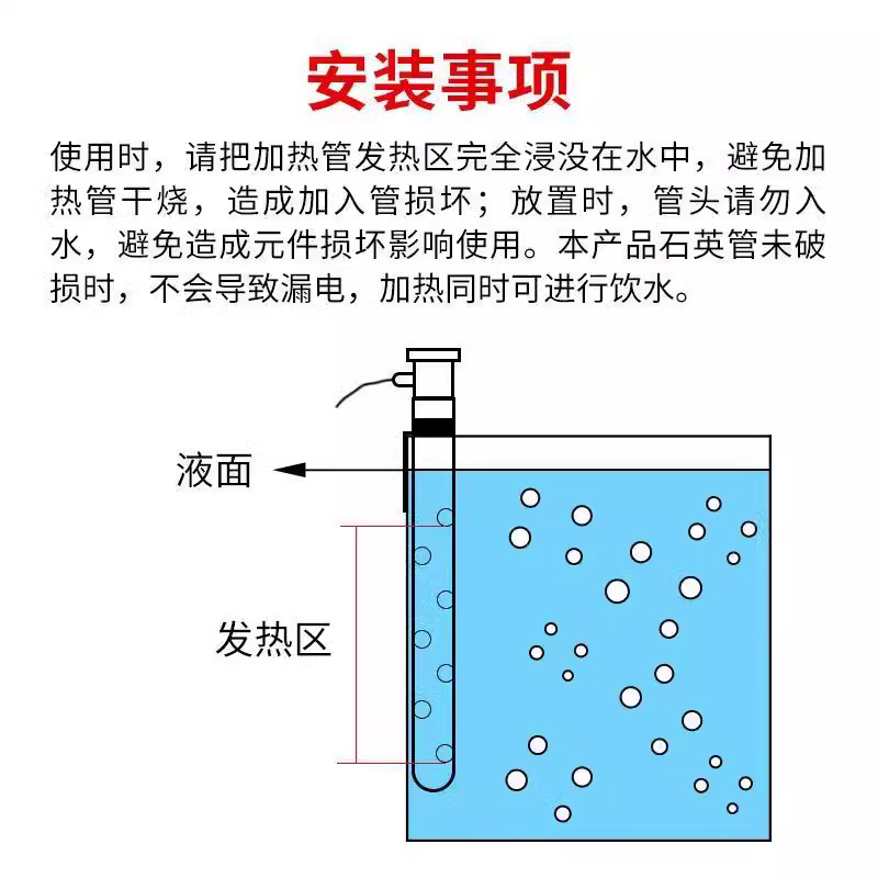 注:發熱區一定要放入液體中,不能干燒!